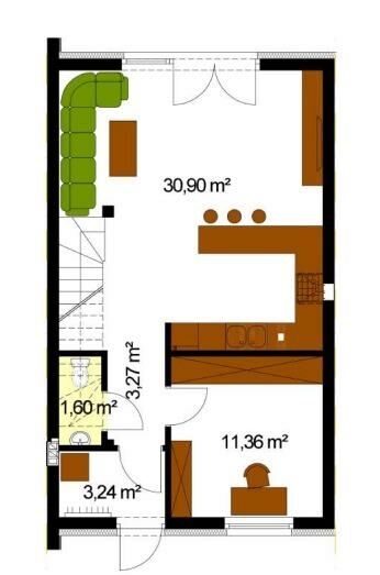 - PARTER- przestronny salon z aneksem kuchennym z bezpośrednim wyjściem na taras, pokój/gabinet, toaleta oraz wiatrołap,