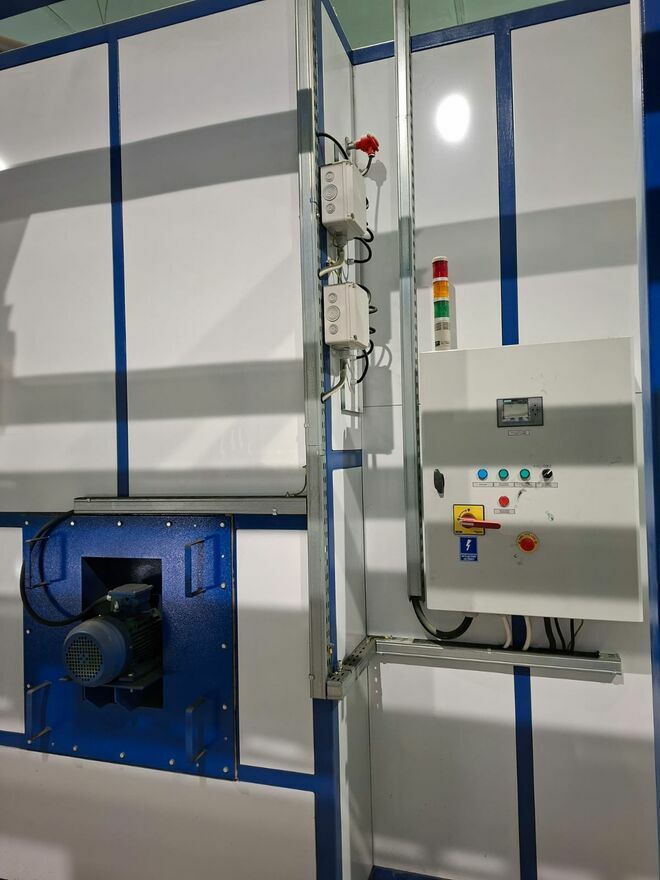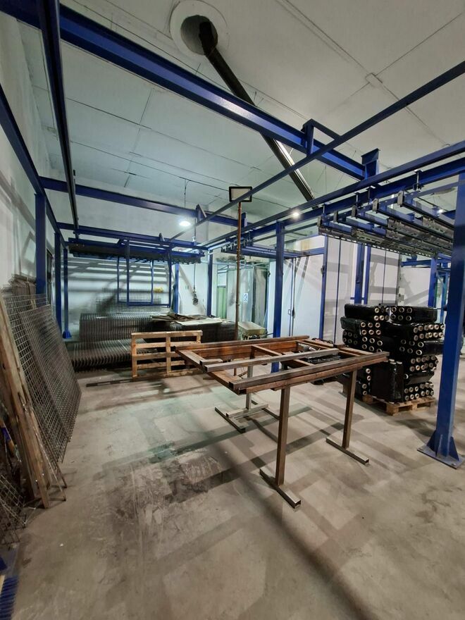 Kompletna linia lakierni proszkowej, kabina + piec + transpo